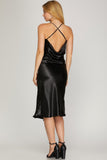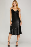 Anemone - Satin Cowl Neck Midi Cami Dress- Black