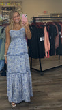 Charlotte - Sleeveless Smocked Woven Print Tiered Maxi Dress - Blue