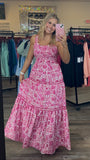 Charlotte - Sleeveless Smocked Woven Print Tiered Maxi Dress - Pink