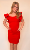 Daisy - Ruffled Sleeve Short Dress - Red