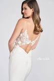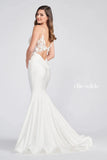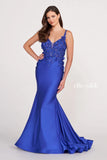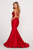 Captivate the room in this glitter prom dress with a square neckline, lace-up back, and a slit.