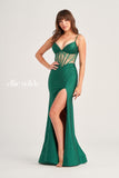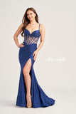 Elevate your prom style with the Ellie Wilde EW35027 gown. Made with luxurious Jersey Spandex fabric, this dress offers comfort and a flattering fit. The stunning stone accents add a touch of glamour to the sleek design. Make a statement on your special night with this dress.