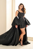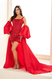 Indulge in the luxurious feel of the Ellie Wilde Prom Style EW36012 dress. The Taffeta and Stretch Sequin fabric embraces your figure, while the Stone Accents add a touch of glamour. The long cape included completes this exquisite style. Elevate your prom night in this captivating dress!