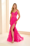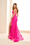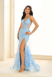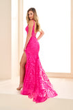 Indulge in the romance and glamour of this Ellie Wilde Prom Style EW36018 dress. Its embroidered tulle, lace applique, and glitter tulle fabric are adorned with delicate stone accents, creating a mesmerizing look. The corset bodice, lace-up back, and slit add a touch of elegance and allure. Experience the ultimate beauty and allure in this stunning dress.