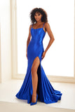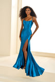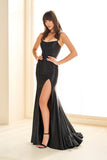 Looking for a show-stopping prom dress? Look no further than the Ellie Wilde EW36021! This stunning dress features a stretch knit fabric that moves with you, while the corset bodice ensures the perfect fit. The lace-up back adds a touch of elegance, and the slit adds a sultry touch. Turn heads and feel confident in this exquisite prom style.