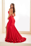 Step into the spotlight and stun the crowd with the Ellie Wilde Prom Style EW36022! Made with luxurious Stretch Knit fabric, this dress features a daring Plunging V neckline, a sultry Low Cut Open Back, and a chic Slit to show off your legs. Feel confident, sexy, and unforgettable in this statement-making dress.