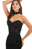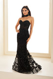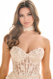 This mesmerizing Ellie Wilde Prom Style EW36028 dress features a stunning combination of embroidered tulle, glitter tulle, and beading, adorned with three-dimensional flowers and delicate sequin details. The corset bodice and choker add an alluring touch, while the stretch lining and detachable train ensure a comfortable and versatile fit. Get ready to make a statement at your next event with this dress that truly embodies elegance and glamour.