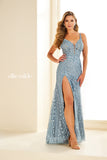 Get ready to turn heads in the stunning Ellie Wilde Prom Style EW36033! This dress features a unique Cracked Ice, Sequin, and Tulle fabric with a stretch lining and two layers for the ultimate comfort. The corset bodice adds a touch of elegance, while the slit will have you feeling like a true princess. Make a statement at prom or any special occasion!