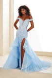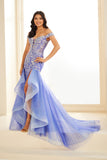 This stunning Ellie Wilde Prom Style EW36036 is a showstopper! The cracked ice fabric paired with lace applique, sequin, beading, and stone accents creates a glamorous and eye-catching look. The stretch lining and pleated tulle add a touch of comfort and movement, while the corset bodice and slit add a sexy and flattering touch. Perfect for any prom or special event!