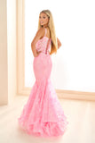This stunning Ellie Wilde Prom Style combines the unique fabric of Stardust Glow in the Dark with intricate Lace Applique, sparkling Sequins, and delicate Beading. The Stretch Lining ensures a comfortable fit while the Horsehair adds a touch of elegance. The Corset Bodice and Lace-Up Back complete this one-of-a-kind look!