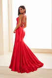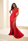 This stunning Ellie Wilde prom dress features a stretch knit and lining, with a corset bodice and lace-up back for a perfect fit. The slit adds a touch of sultry elegance. Elevate your prom style with Ellie Wilde EW36044!