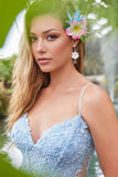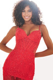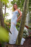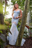Get ready to make a statement with Ellie Wilde Prom Style EW36050! This dress features a stunning combination of Novelty Lace, Lace Applique, Sequin, and Stone Accents, creating a unique and eye-catching look. The Corset Bodice adds a touch of elegance, while the Tulle, Hard Organza, and Stretch Mesh Lining provide comfort and flow. Don't miss out on this must-have dress!