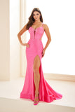Experience elegance and comfort in the Ellie Wilde Prom Style EW36052! Made with stretch knit and featuring stone accents and stretch lining, this dress also boasts a corset bodice and lace-up back for a perfect fit. Complete with a slit for a touch of glamour.