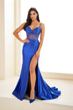 Get ready to turn heads in the Ellie Wilde Prom Style EW36055! Made with Stretch Knit fabric, this stunning dress features sparkling stone accents and intricate beading, perfect for catching the light on the dance floor. The corset bodice adds an elegant touch, while the stretch lining ensures a comfortable fit. Complete with a stylish slit, this dress is the perfect choice for any special occasion.