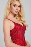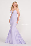 This Ellie Wilde Prom Style EW120012 gown offers a stunning silhouette with a sleeveless fit and flare design, complemented by a plunging v-neck and open bandeau back. Featuring stone accents and a horsehair hem, this gown exudes elegance and sophistication, making you the center of attention at any event.