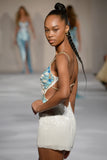 Butterfly bugle beaded cocktail dress with beaded embellishments and open back.