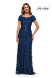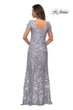 Short sleeve lace mother of the bride or mother of the groom dress with scoop neck.