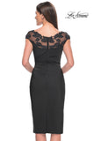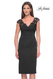 Chic short satin dress with flattering pleating across the waist. The top features cap sleeves and beautiful beaded leaf detailing. Back zipper closure.