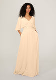 Billowing bridesmaid dress features a v-neckline with floaty, three-quarter bishop sleeves, and ruched waist detail to define your figure.