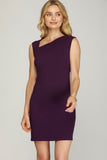 Peony- Sleeveless Asymmetrical Neck Dress- Plum