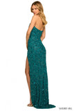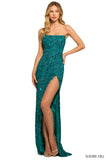 Sherri Hill 55411 Fully beaded strapless gown with high slit.