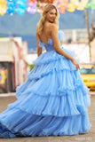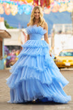 Crumb catcher organza pleated ball gown with ruffle tiered skirt.