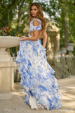 Sherri Hill 56995 IN STOCK Ivory/Blue Print Size 6