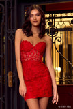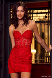 Leaf lace embroidered fitted cocktail dress with a corset top and a sweetheart neckline.
