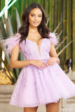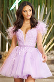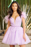 Lace deep V bodice with tulle skirt, beaded belt, and feathered sleeves.