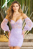 Strapless fitted sequin corset dress with removable sequin sleeves.
