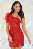 One shoulder feather corset bodice with lace embellishment and iridescent sequins.