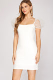 MEDIUM: Sidney - Mini Dress with Sheer Sleeves - White