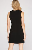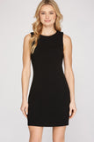 Elevate your style with the Simone Sleeveless Dress in sleek black. Made from a textured heavy knit, this dress features a flattering princess line cut that accentuates your curves. Stay cool and stylish all day long with the comfortable sleeveless design. Perfect for any occasion, dress it up or down for effortless, chic looks.