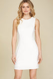 The Simone Sleeveless Dress in Off White is a must-have for any wardrobe. Made from a textured heavy knit, this dress is not only stylish but also comfortable. The princess line cut flatters any figure, making you feel confident and elegant. A perfect choice for any occasion.