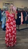 Tampa - Ruffled Sleeve Woven Chiffon Floral Print Tiered Maxi Dress - Red