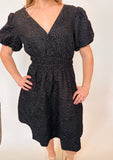 Toronto - Puff Sleeve V Neck Mini Dress - Black
