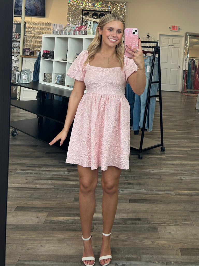 Laurent - Brocade Print Dress Light Pink