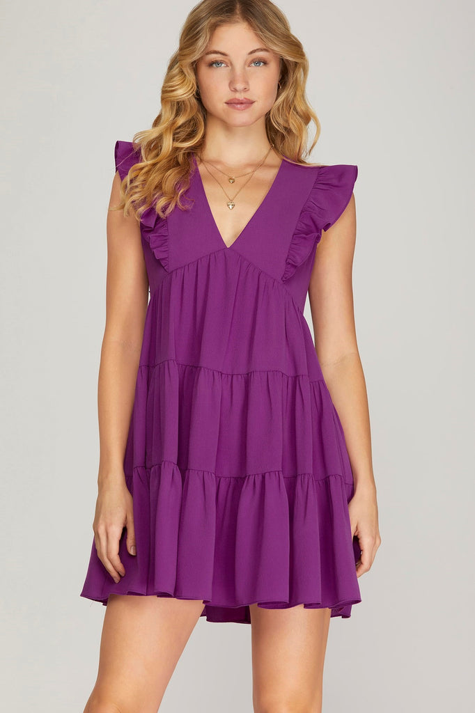 Poppy - Sleeveless Woven Ruffled Dress - Violet Purple