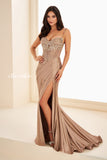 Elevate your evening with the Ellie Wilde EW37015 gown, a stunning metallic mermaid silhouette adorned with sparkling all-over stone accents. This long, sleeveless dress features a flattering sweetheart neckline and a dramatic slit, enhancing your elegance and movement. The basque waistline and corset bodice with lace-up back provide a perfect, customizable fit that highlights your curves. Crafted from stretch knit fabric with intricate beading, this gown ensures both comfort and glamour for unforgettable occasions.