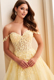 This long Ellie Wilde EW37028 ball gown combines elegance and charm with its off-the-shoulder lace straps and sweetheart neckline. The sheer corset bodice with lace-up back enhances your silhouette, while intricate beading, glitter tulle, lace appliqué, sequins, and stone accents add a sparkling touch. Practical pockets are seamlessly integrated for convenience. The basque waistline and detachable lace straps offer versatile styling for a truly unforgettable look.