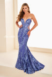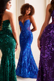Turn heads in the Ellie Wilde EW37042, a stunning strapless mermaid dress featuring an elegant pointed sweetheart neckline. Crafted from embroidered netting, sequins, and layers of tulle, it beautifully hugs your natural waist before gracefully flaring out. The boned bodice offers structured support while the lace-up back ensures a perfect fit. Ideal for special occasions, this long gown combines timeless sophistication with modern allure to make you feel unforgettable.