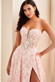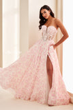 Experience elegance with the Ellie Wilde EW37091, a long chiffon floral gown adorned with delicate stone accents and three-dimensional organza flowers. Its strapless sweetheart neckline and basque waistline enhance your silhouette with a flattering A-line shape. The corset bodice offers structured support, while the lace-up back ensures a perfect fit. Featuring practical pockets and a zipper slit, this dress combines beauty and functionality for your special occasion.