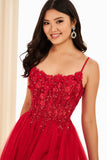 Slip into pure elegance with the Ellie Wilde EW37112, a breathtaking A-line gown that captures every magical moment. Adorned with intricate beading, delicate lace appliqué, and shimmering stone accents, this dress radiates sophistication from every angle. Three-dimensional flowers add dimensional romance, while the scoop neckline and structured corset bodice provide flattering support. The lace-up back ensures a customized fit that hugs you perfectly, and flowing tulle skirt with a chic side slit offers graceful movement and modern flair. This is the gown you've been dreaming of—unforgettable, stunning, and entirely you.