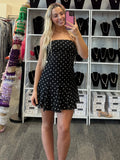 Fullerton - Polka Dot Halter Neck Sleeveless Mini Dress - Black and white