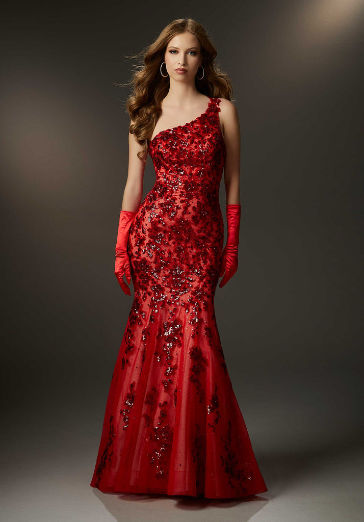 Morilee Prom Style 48025 IN STOCK RED/NUDE SIZE 16
