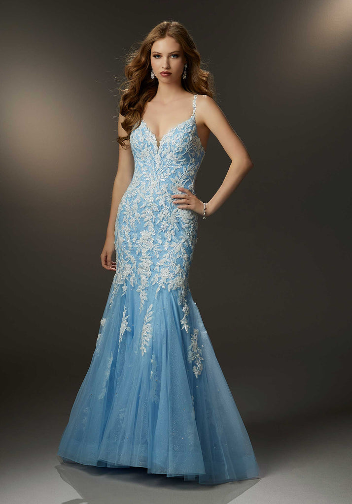 Contrasting Beaded Lace Appliqués on Tulle Over Sparkle Tulle
