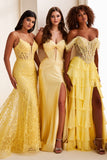 Express your unique sense of style with the Ellie Wilde Prom Style EW36008! Featuring beautiful Embroidered Mesh and Glitter Tulle fabric with sparkling stone accents, this dress is sure to turn heads. The corset bodice and lace-up back add a touch of elegance, making it the perfect choice for your next prom or formal event.