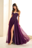 Unleash your inner princess with the Ellie Wilde Prom Style EW36083. This stunning dress features a glamorous tulle and glitter tulle fabric, adorned with delicate lace appliques and sparkling stone accents. The corset bodice and off-the-shoulder straps add a touch of elegance, while the convenient side pockets and slit provide both style and functionality. Perfect for any special occasion!