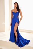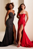 Make a stunning entrance in the Ellie Wilde EW37009, a dramatic mermaid gown designed to captivate. Featuring a sculpted sweetheart neckline and strapless silhouette, this dress enhances your natural waist with a boned bodice for flawless support. Intricate lace applique, sparkling sequins, and stone accents add exquisite detail, while the lace-up back ensures a perfect fit. The adjustable thigh-high slit with zipper offers both elegance and allure, making this long gown ideal for unforgettable moments. Embrace bold sophistication and turn heads in this exceptional statement piece.