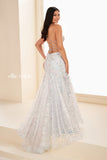 Elevate your elegance with the Ellie Wilde EW37021, a stunning long A-line gown crafted from embroidered and glitter tulle adorned with delicate beading and sequins. Its sleeveless scoop neckline and natural waistline create a flattering silhouette, while the corset bodice offers structured support. Includes detachable bows on the straps, allowing you to customize your look effortlessly. Perfect for making a memorable entrance at any formal event.